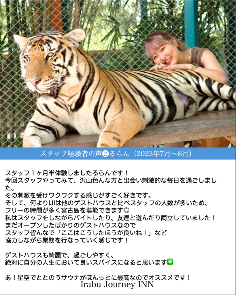 また2024年2月に1ヶ月間スタッフをしてくれたちーちゃんがスタッフ滞在記を書いてくれたので、良かったらこちらも見てください。